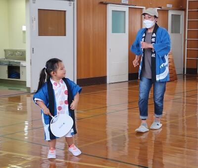 幼稚部のみなさんは、お祭りに向けて、音楽遊びで和太鼓を叩いたり、工作あそびでうちわや山車の飾りを作ったりして準備してきました。