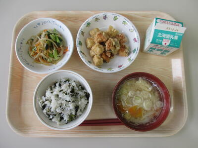 *手作りわかめご飯は新メニューです。北海道産のわかめに酒、みりん、塩を加えて炒り、白ごまも加えて炊きたてのご飯に混ぜ合わせました。塩分が控えめで、おいしくできあがりました。