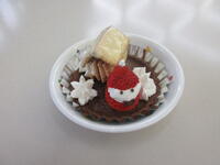 *クリスマスケーキは、手作りのチョコレートケーキの上に、ビスケットの家といちごのサンタクロースをのせました。子どもたちは大喜びでした。
