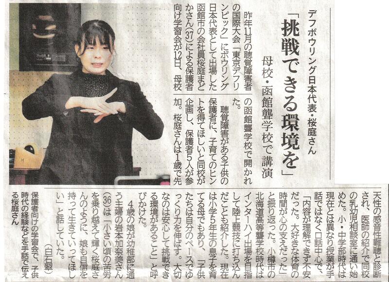 2月12日(木)、本校の卒業生でデフリンピックボウリング日本代表の桜庭まどかさんを講師に迎え、保護者学習会(PTA研修会)を開催しました。