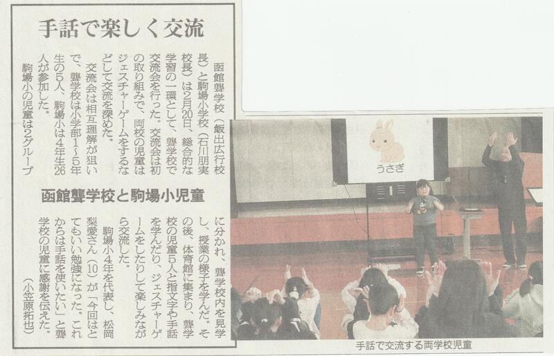 2月20日(金)、「ノーマリー教室」、総合的な学習の時間の一環として、函館市立駒場小学校の4年生と本校の小学部の児童が交流会を行いました。