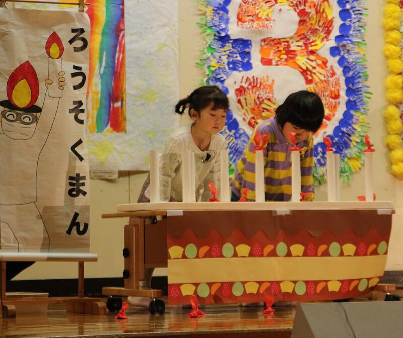 幼稚部は、学校の誕生会を、かわいらしくも感謝の気持ちを込めて表現しました。