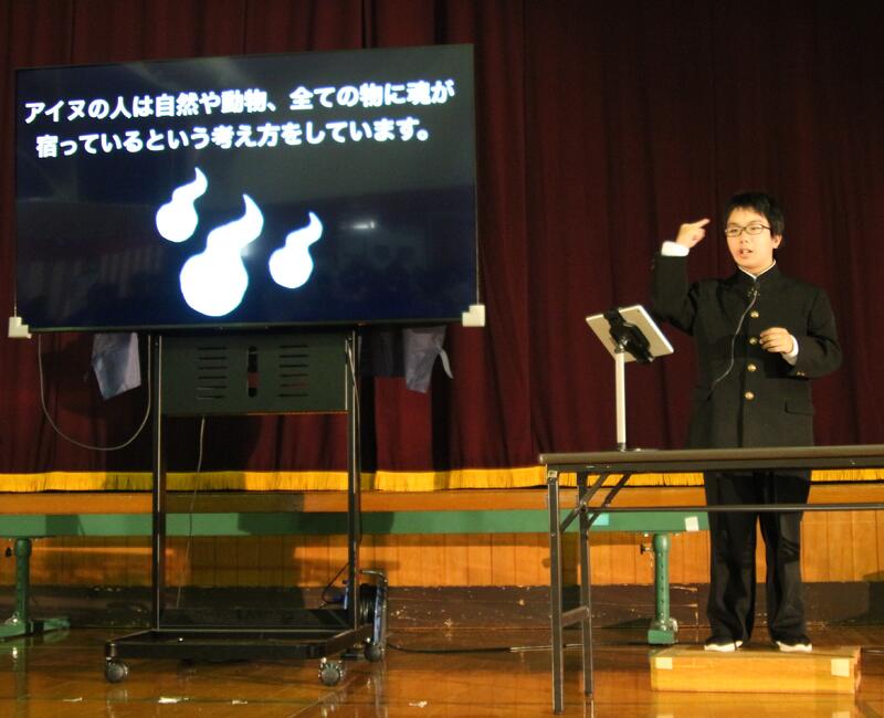 中学部は、「将来の生活や社会を見つめて」として、自らテーマ選び、調べ、考えたことを、皆さんに分かりやすく発表しました。その内容はどれも未来への希望と決意を表現したものです。