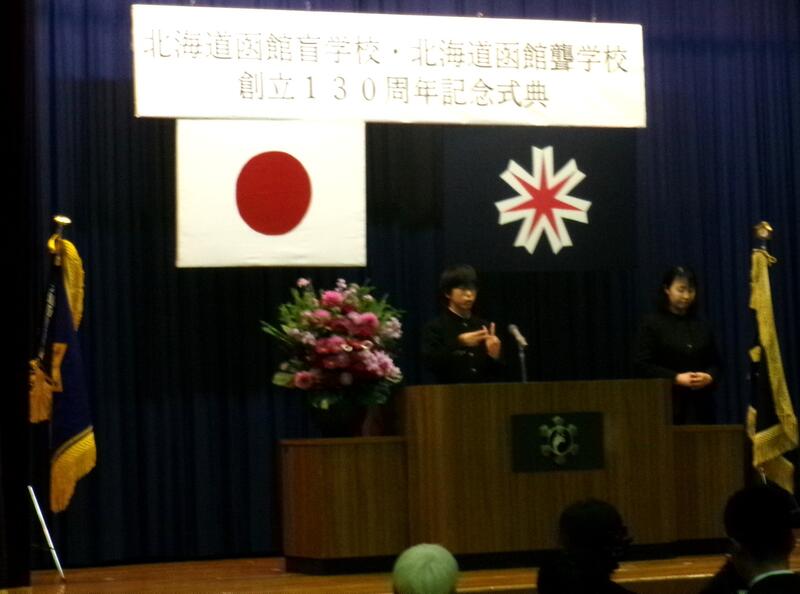 今年11月、デフリンピックが東京で開催されます。その啓発活動として、キャラバンカーで北海道ろうあ連盟の方々が、本校を訪れました。