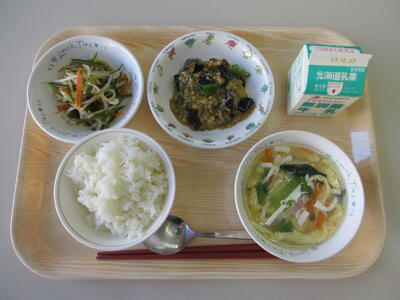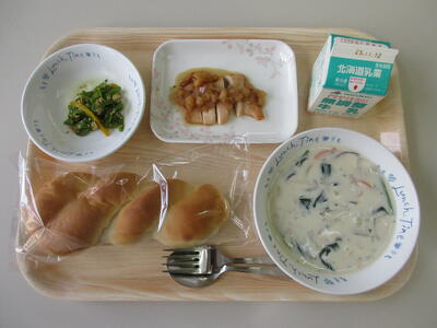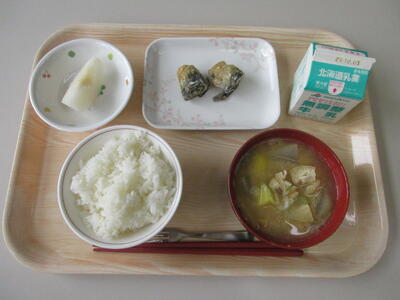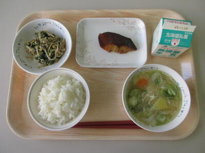 *ぐるっと道南給食週間1日目の今日は、北海道の郷土料理「三平汁」と、七飯町箱館醸蔵の酒かすを使った「鶏肉のみそかす焼き」です。白菜は七飯産のとれたてのものを使ったので、甘くてとてもおいしいおかか和えでした。