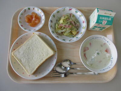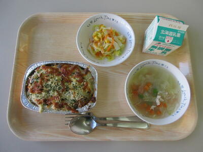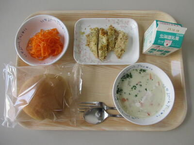 *ぐるっと道南給食週間2日目は、函館のソールフードともいわれる「シスコライス」、今金男爵を使った「スコップコロッケ」、道南の昆布と道産のとうもろこし、道産大豆の豆腐などの地場産物をたっぷり使った「昆布スープ」。どれも大好評で本日も完食でした。