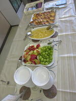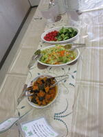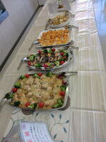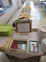 *年に1度のバイキング給食。事前学習で、主食・主菜・副菜を揃えてバランスよく、残さず、後から取る人のことを考えてとることを学習していた子ども達は、しっかりルールを守り、地場産物たっぷりのお料理を堪能しながら楽しく参加することができました。保護者、学校評議委員、ボランティアの皆様にも御参加いただき、盛大に開催することができました。