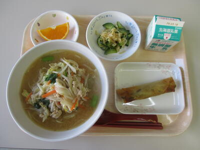 *函館は、捕鯨船の休息基地として栄えた歴史があり、くじら肉食文化がある街なので、今日はくじらの竜田揚げを献立に取り入れました。