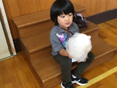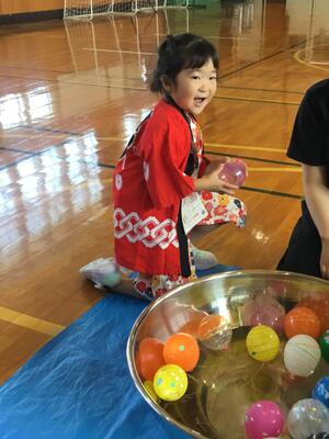 その後はお待ちかねの縁日ごっこ!おいしいわたあめはおかわりもして、自分で作ってみる子もいました。ヨーヨー釣りやひもくじでは景品ももらい、ご機嫌な皆さん。ボウリングも楽しみましたよ。