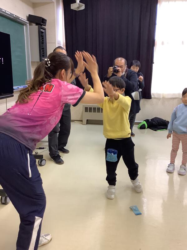 11月11日(火)にボウリングでデフリンピックに出場する櫻庭まどかさんの壮行会を行いました。櫻庭さんは本校の卒業生で、これまでも函館聾学校の生徒と一緒にボウリングをするなど交流を深めてきました。壮行会では櫻庭さんから幼児児童生徒へデフリンピック出場に向けた思いを伝えてくれました。代表して児童生徒会が挨拶を行い、最後は皆で櫻庭さんにサインエールを送り、応援している気持ちを伝えました。